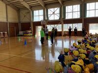 各班での遊びの後は、全校遊び。なかよし班担当の先生とのじゃんけんリレーを楽しみました。