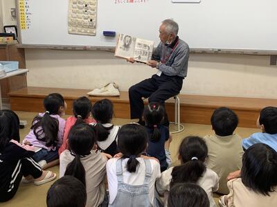 5月31日(金)、今日から読み聞かせボランティアさんによる読み聞かせが始まりました。新型コロナも5類に移行されましたので、ボランティアさんの近くに集まり読み聞かせを聞く形に戻しました。