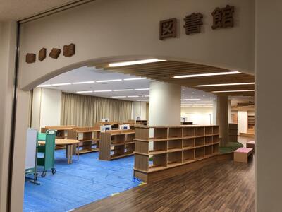 10月3日(木)の図書館です。本棚は入りましたが、まだ蔵書が1冊も入っていない状況でした。