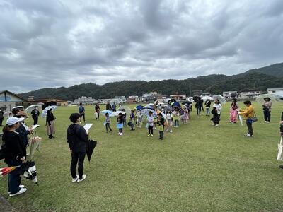 「ふるさと健康むら」に集合した時には、雨がパラパラと降っていましたが、たくさんの方に参加していただきました。