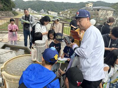 観光案内所内、三朝小唄モニュメント、すーはー温泉など、三朝温泉街のどこかにあるクイズを探しながら、全6問の問題を解きました。