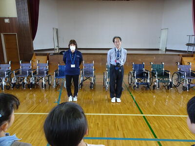11月13日(水)に、4年生が総合的な学習の時間に、車いす乗車体験を行いました。