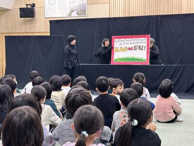 2月14日(金)に、1・2年生が人形劇サークル「てっぽんかっぽん」さんの紙芝居と人形劇を鑑賞しました。