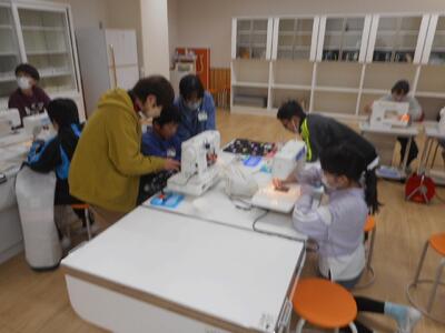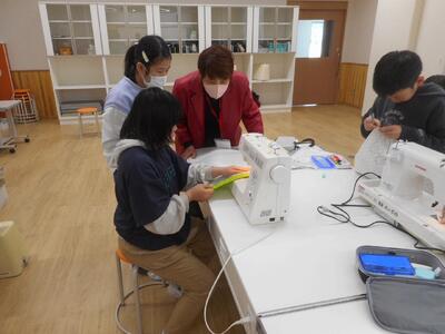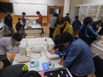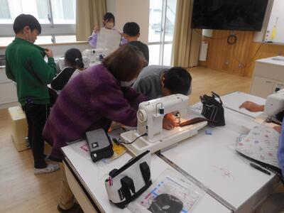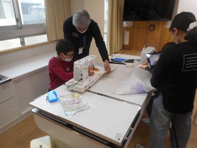 5年生は、初めてミシンを使いナップザック作りに取り組みました。その学習をサポートしていただくため、約1か月間、延べ40名の地域の方々にお世話になりました。本当にありがとうございました。