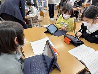 自分が考えたことをタブレットを使ってまとめていきました。