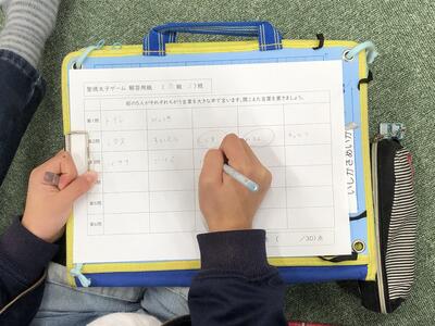 さぁ、それぞれなんという言葉を発したのでしょう。なかよし班で相談です。