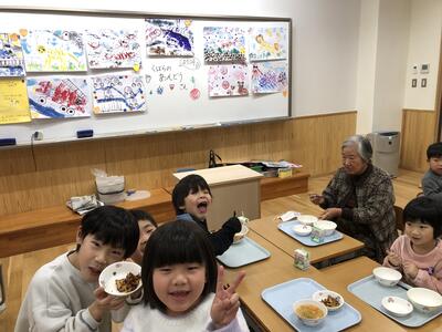 1月27日(月)は、三朝町教育委員会、三朝町議会議員のみなさんをお招きした交流給食を行いました。