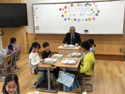 給食週間の取組というわけではありませんが、本校では宍戸栄養教諭が、各学級の給食時に、子どもたちといっよに給食を食べながら、食についてお話をされ指導されます。