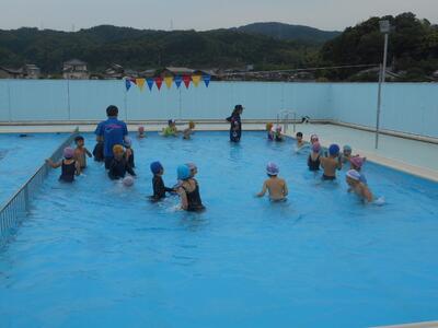 6月2日、プール開きを行いました。プール開きにあたっての校長の話や児童代表あいさつは、給食時の放送で行い、実際の初泳ぎはそれぞれの学年で行いました。初めて入るプールに大きな歓声があがりました。