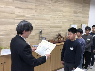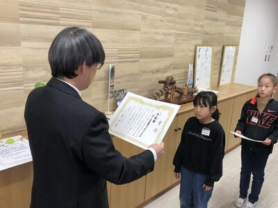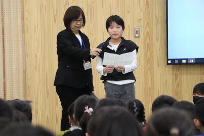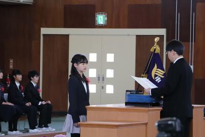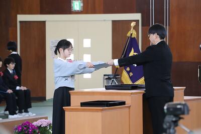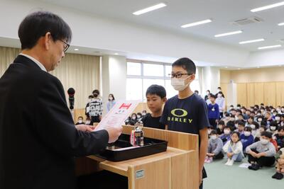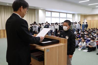 各学年の代表に修了証書を手渡しました。