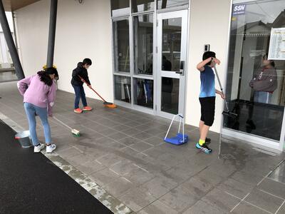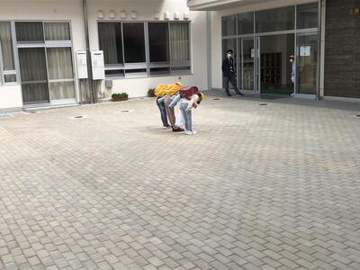 12月から始めている校舎に入る前の一礼をして校舎に入っていきました。