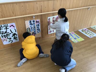 メッセージをくれた5、6年生が手にしていたのは、6年生が春節に合わせて送ったHAPPY NEW YEARカードが握られていました。