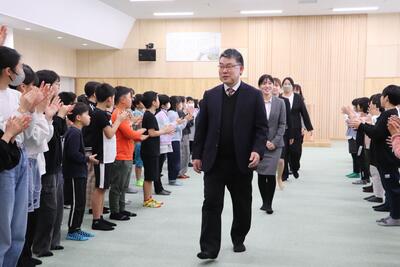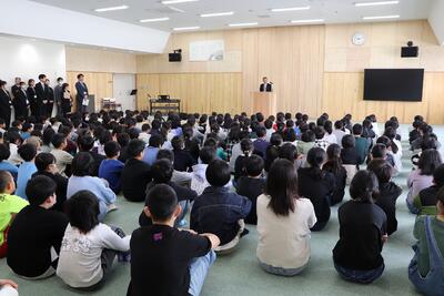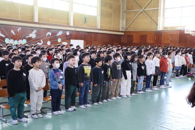 4月9日、三朝小学校新年度のスタートです。着任式では、7名の先生方をお迎えしました。始業式後の担任発表は、ワクワク、ドキドキでした。