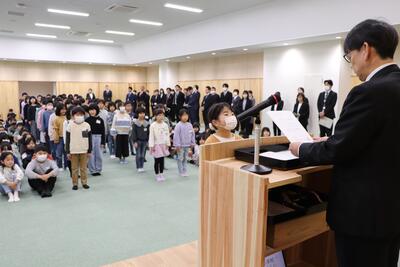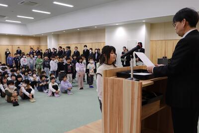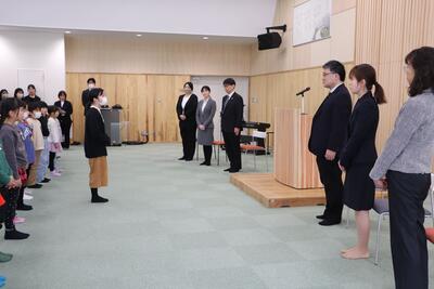 一人一人の離任のあいさつの後、代表児童がお別れの言葉を述べました。素晴らしい言葉に涙をこらえるのが大変でした。