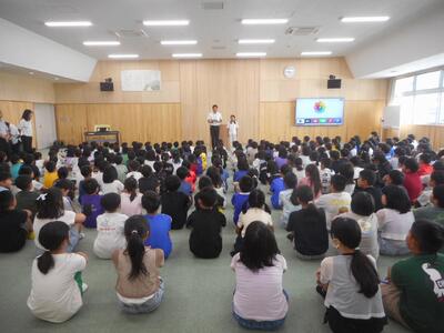 8月28日、2学期が始まりました 投稿: 管理者 (2025/08/28) 8月28日、2学期が始まり元気いっぱいの児童の声が学校に戻ってきました。 2学期始業式終了後に、代表児童が2学期に頑張りたいことを発表しました。また、4年生に転入生があり紹介しました。 そして、中部子ども造形展と各水泳競技大会入賞児童を表彰しました。延べ104名の児童を表彰しました。 Tweet -