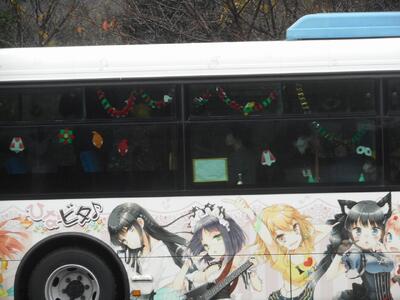 12月15日、2年生が日ノ丸バスをラッピングしました。日ノ丸バスさんのお誘いで、実際に運行されている路線バス2台にラッピングさせていただきました。