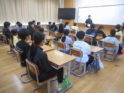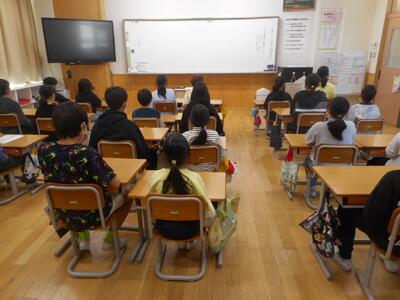 この日、子どもたちは、まず教頭先生から15年前に起こった東日本大震災についてのお話を聞きました。そして、一分間の黙とうを行った後、担任の先生から命の大切さや防災についてのお話を聞きました。